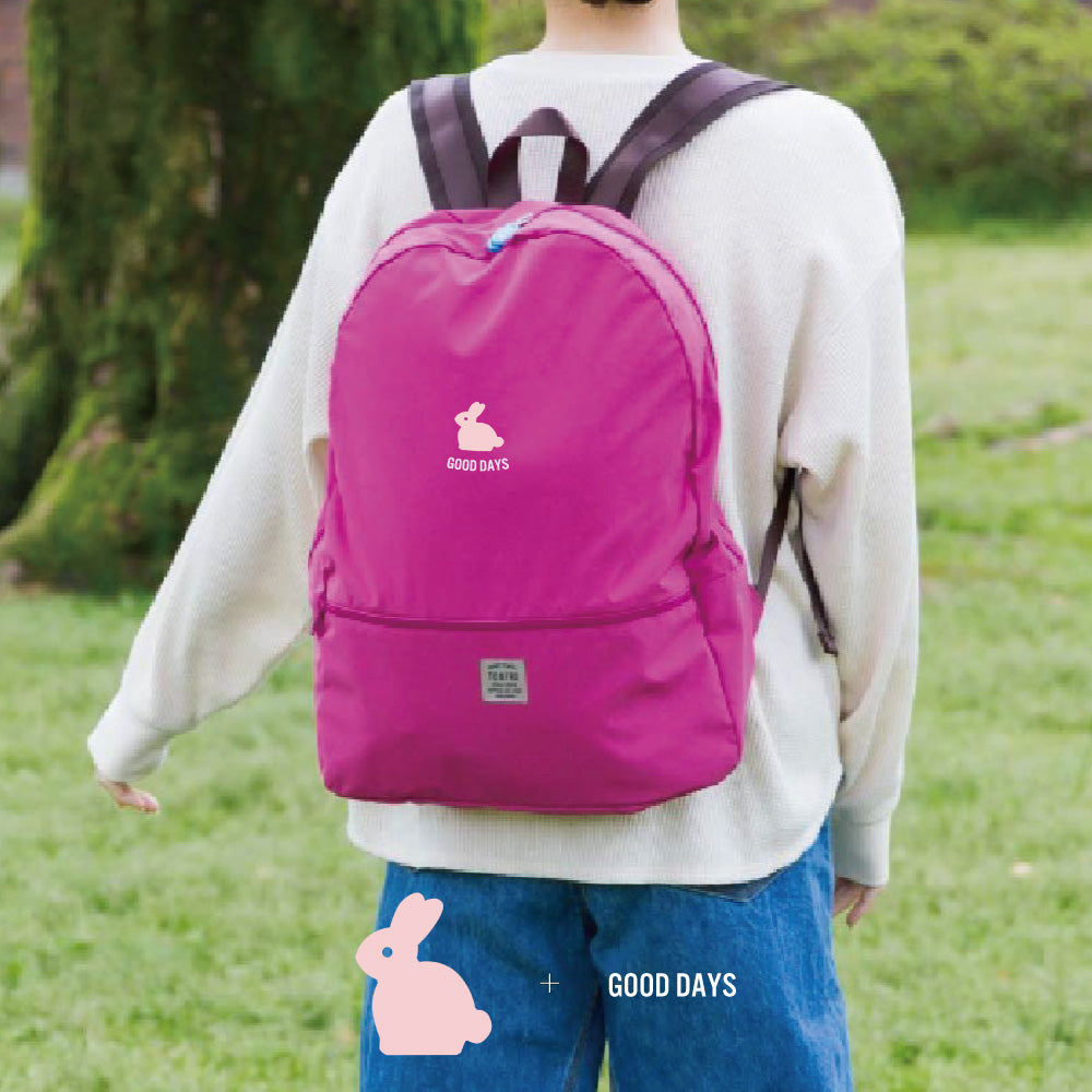 TO&FROならではのコンパクト仕様に。内ポケットに本体をすっぽりと収納することができます。約235g という軽さなので、収納した状態でキャリーバッグに忍ばせておいて、旅先や出先で増えた荷物入れに使うのもおすすめです。また荷物を出し終わったあとのバックパック自体の片付けにも場所を取りません。