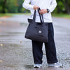 外ポケットがついている生地に、キャリーケースのハンドルを通すとキャリーオンできる仕様になっています。防水の生地なので、雨の日も安心してキャリーオンしながら荷物を運ぶことができます。