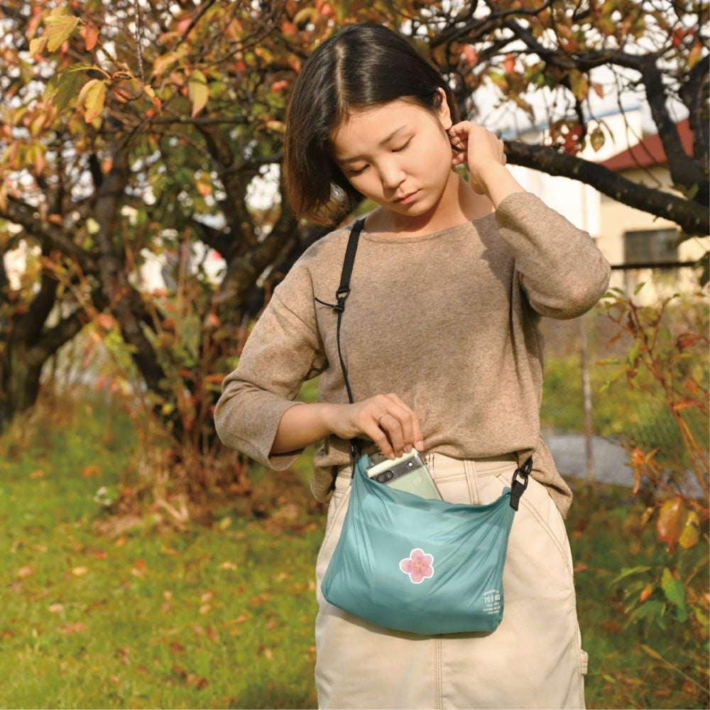 MINIサイズの超軽量ショルダーバッグには、内ポケットが3つ。財布や身の回りの小物をさっと入れられるサイズ感に設定し、サコッシュとして使いやすいショルダーバッグです。内1つのポケットにはパッカブルに収納もできます。