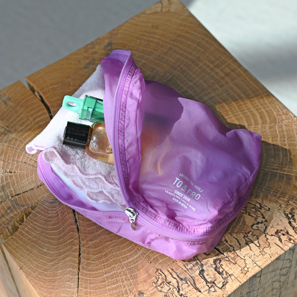 XSサイズは、ハンドタオルやコスメ、ミニボトル、ポケットティッシュといった小物類を入れて、バッグやキャリーケースの中で散らばることなく収納するのに活躍します。もちろん普段のバッグやリュック、バックパック等でもお使いいただけます。