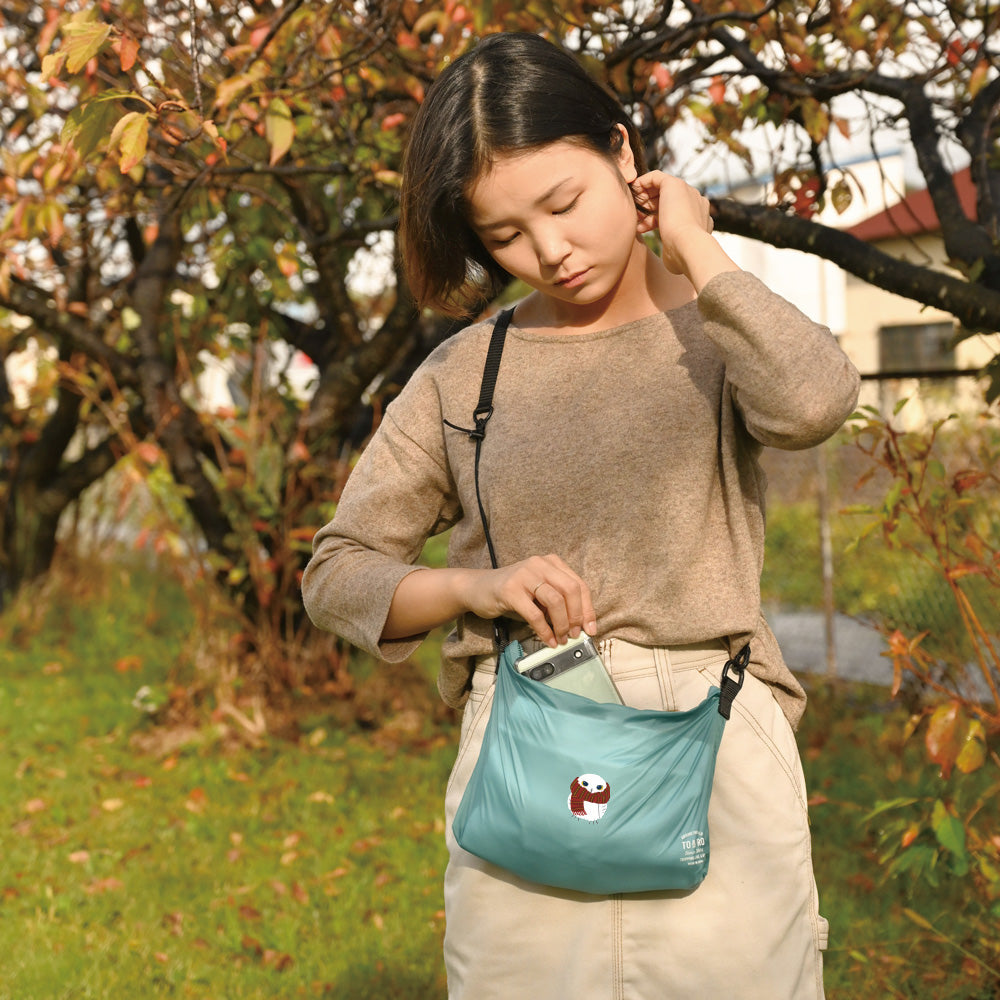 MINIサイズの超軽量ショルダーバッグには、内ポケットが3つ。財布や身の回りの小物をさっと入れられるサイズ感に設定し、サコッシュとして使いやすいショルダーバッグです。内1つのポケットにはパッカブルに収納もできます。