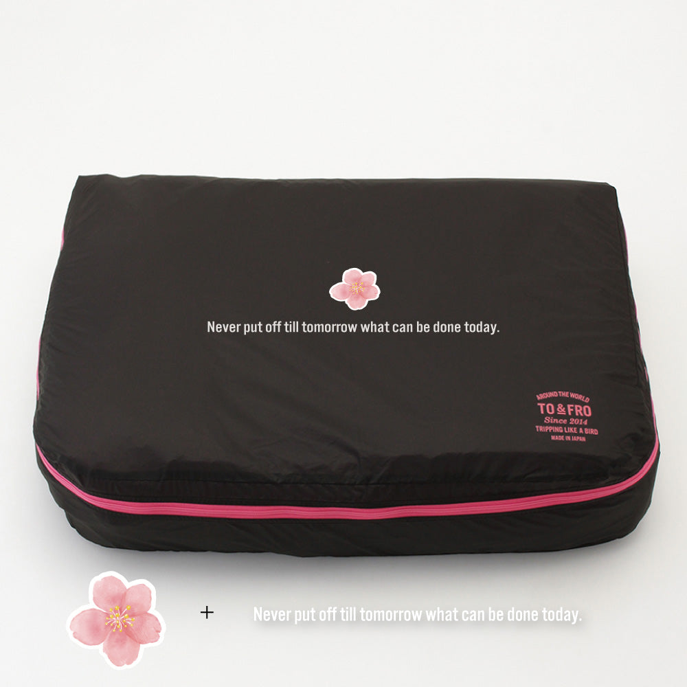 このオーガナイザーAIR Lは、従来定番品のトラベルオーガナイザー Lと同じサイズ(幅52cm×奥行37cm×高さ10cm)のまま、さらに薄い生地を使用することでより軽量性をアップ。