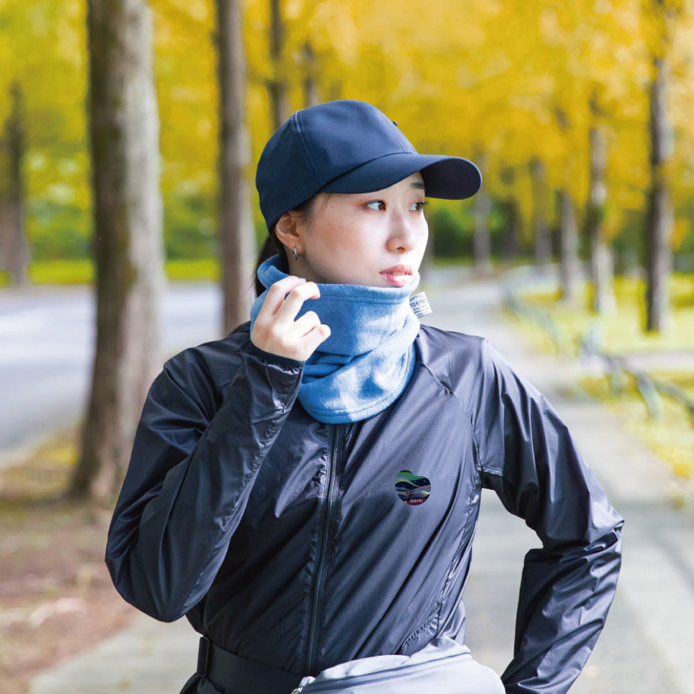 脇にはムレを防ぐためのベンチレーション機能を付け、袖口には手の甲までカバーできるよう親指を入れられるサムホールもプラス。また、フード周りや袖口、裾には、暗い場所での視認性を上げるリフレクターを付け、早朝や夕暮れ時の暗い時間帯でも安全に。