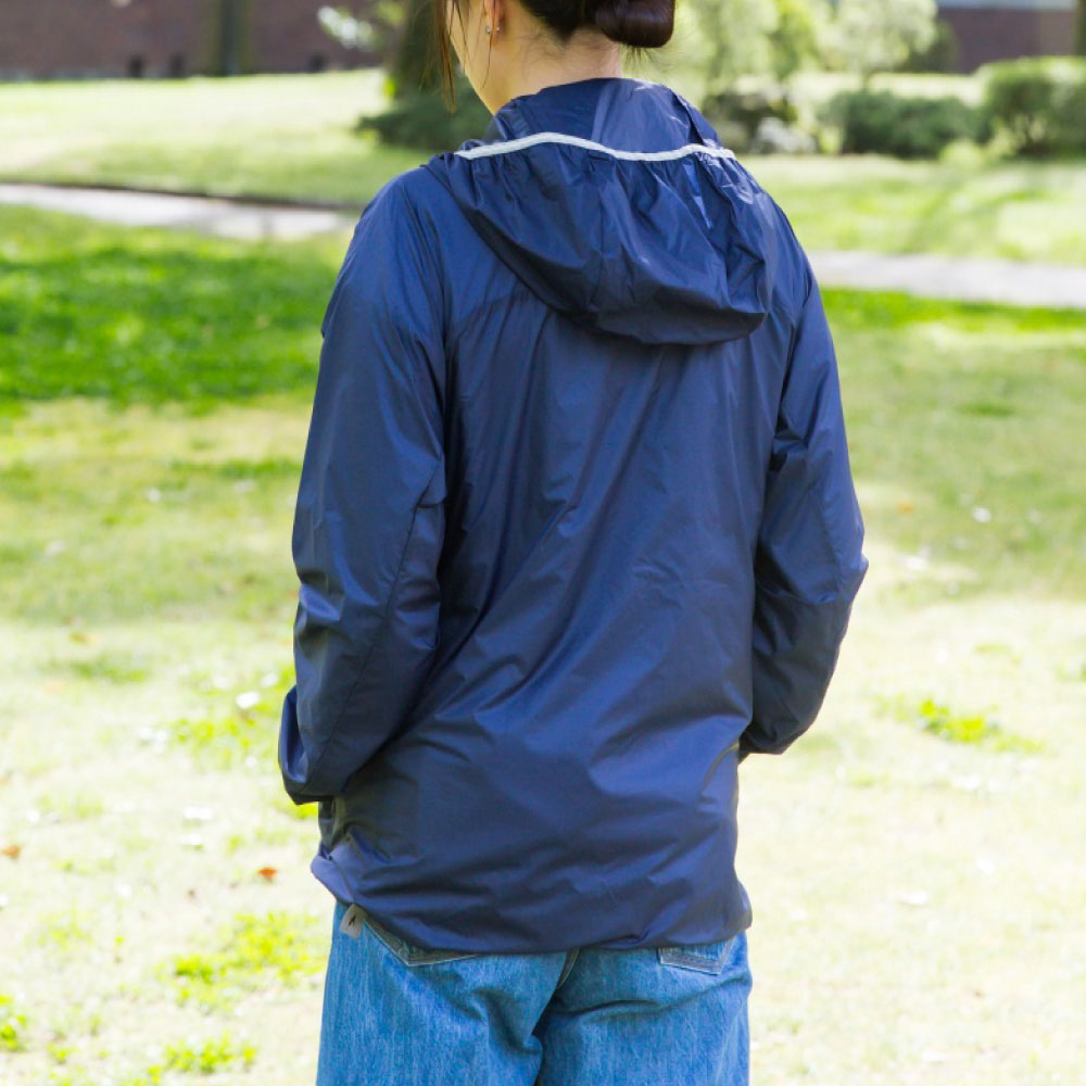 世界最軽量素材の6.5デニールのナイロン生地「Humming Bird -AIR-」を採用し、薄いのに風を通しにくく、撥水機能も付いているので、普段使いはもちろん、早朝や夕暮れのランニング、旅行先でのもう1枚に大活躍します。