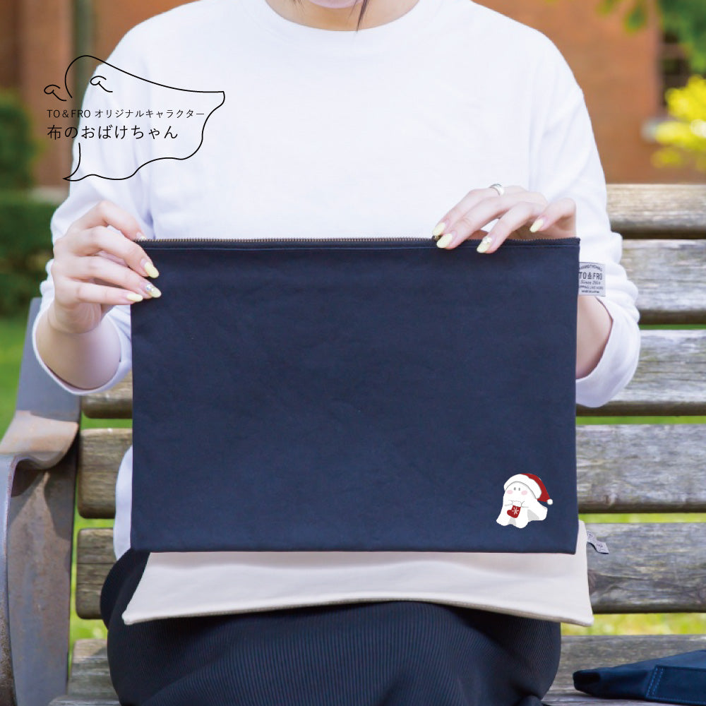 高級感のあるファスナーの引手を採用。TO&FROロゴは挟み込みタグを使用しており、できる限りシンプルなデザインにしました。
