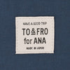 コラボレーションならではのANAforTO&FROのオリジナル織りネーム付き。ファスナーと肩ベルトは、ブラウンに合わせており、この組み合わせはコラボレーションならでは!