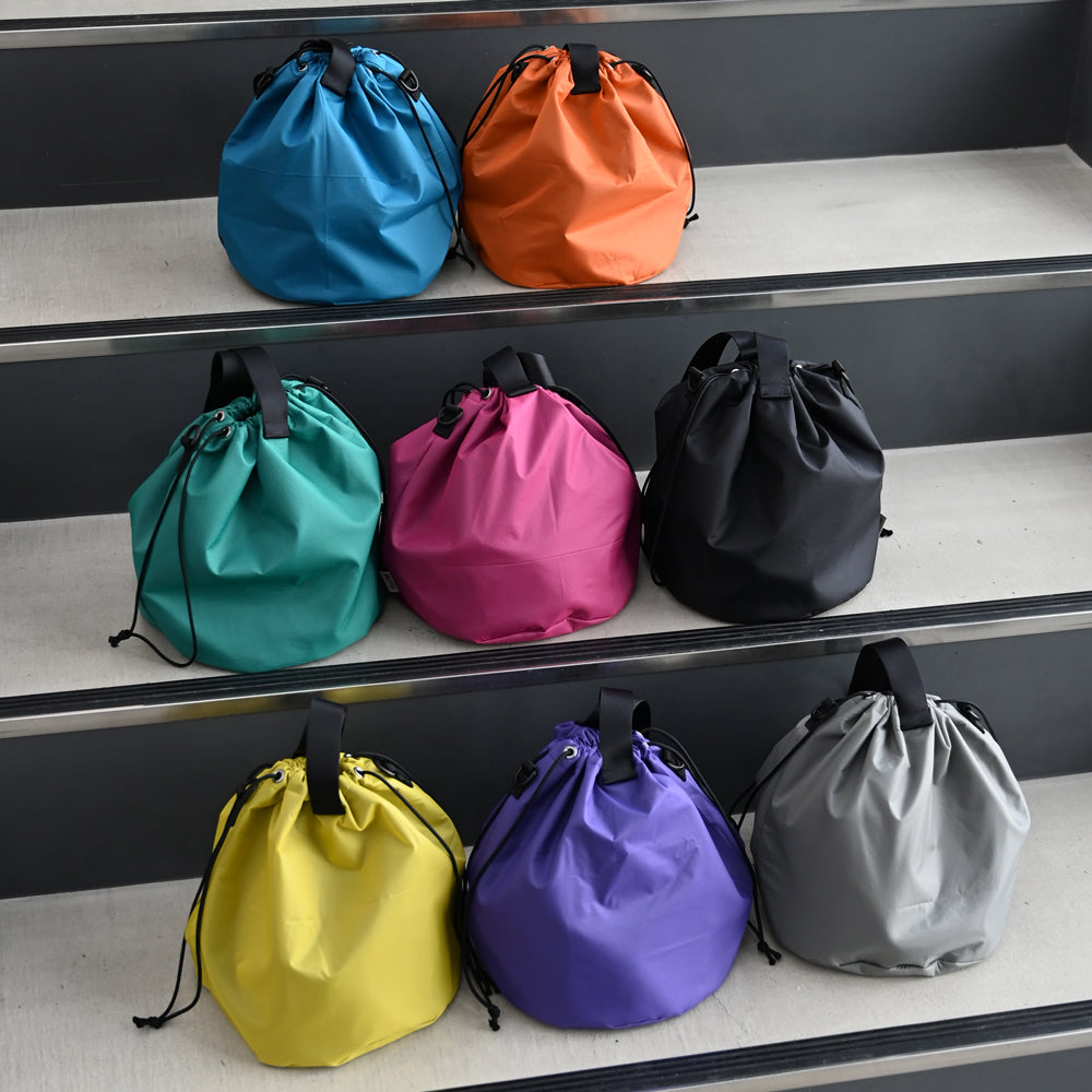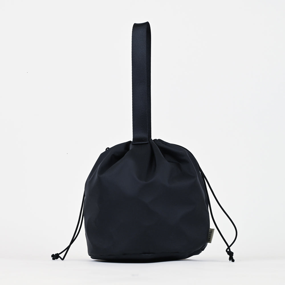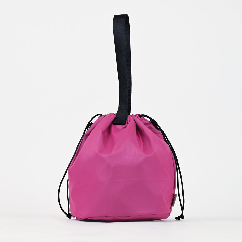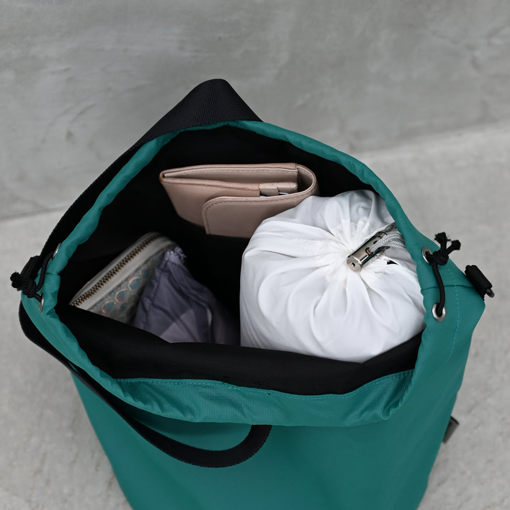 巾着の絞り方で容量調整可能(2.1~6.5L)。内ポケット付きでスマホや小物をサッと取り出せてバッグの中も整います。
