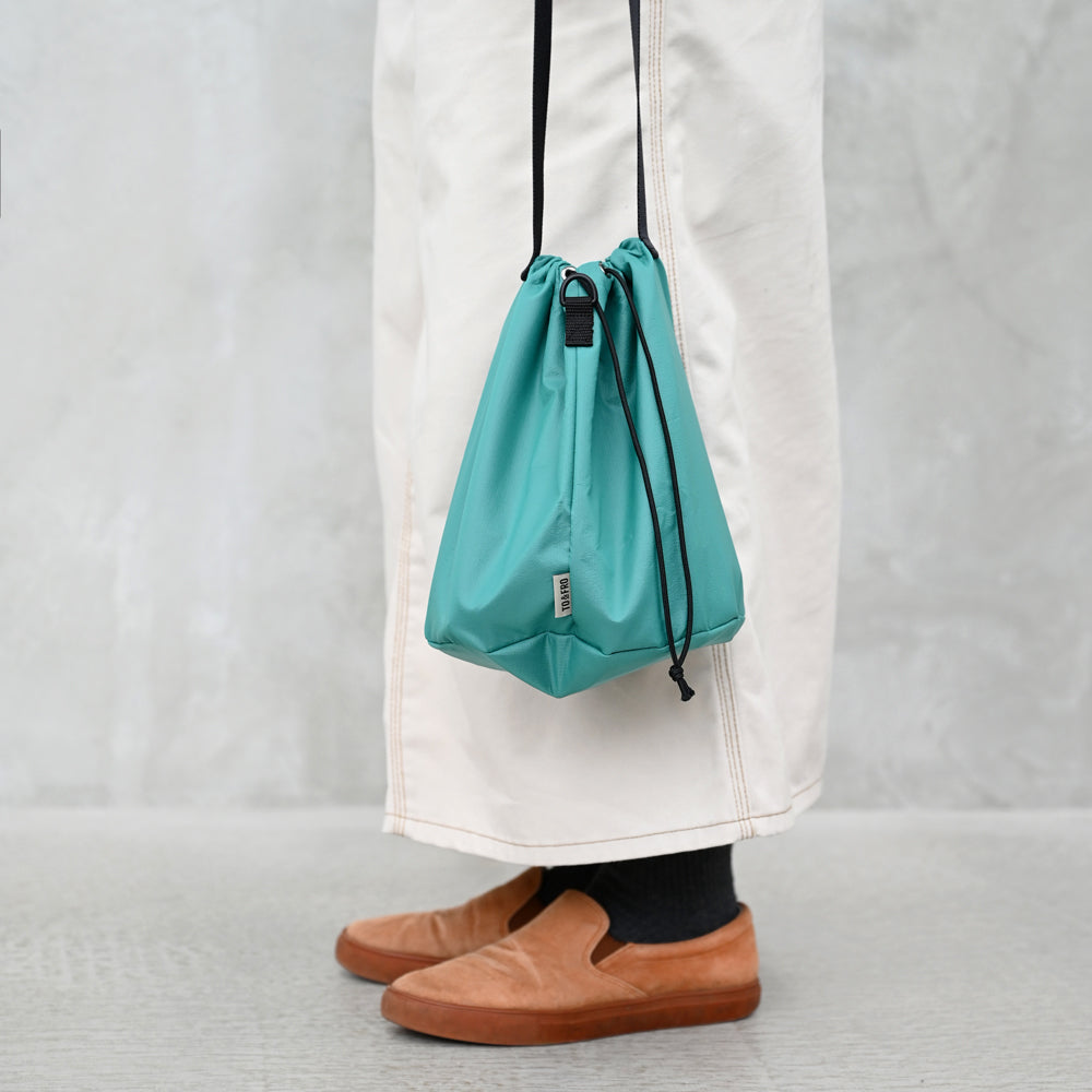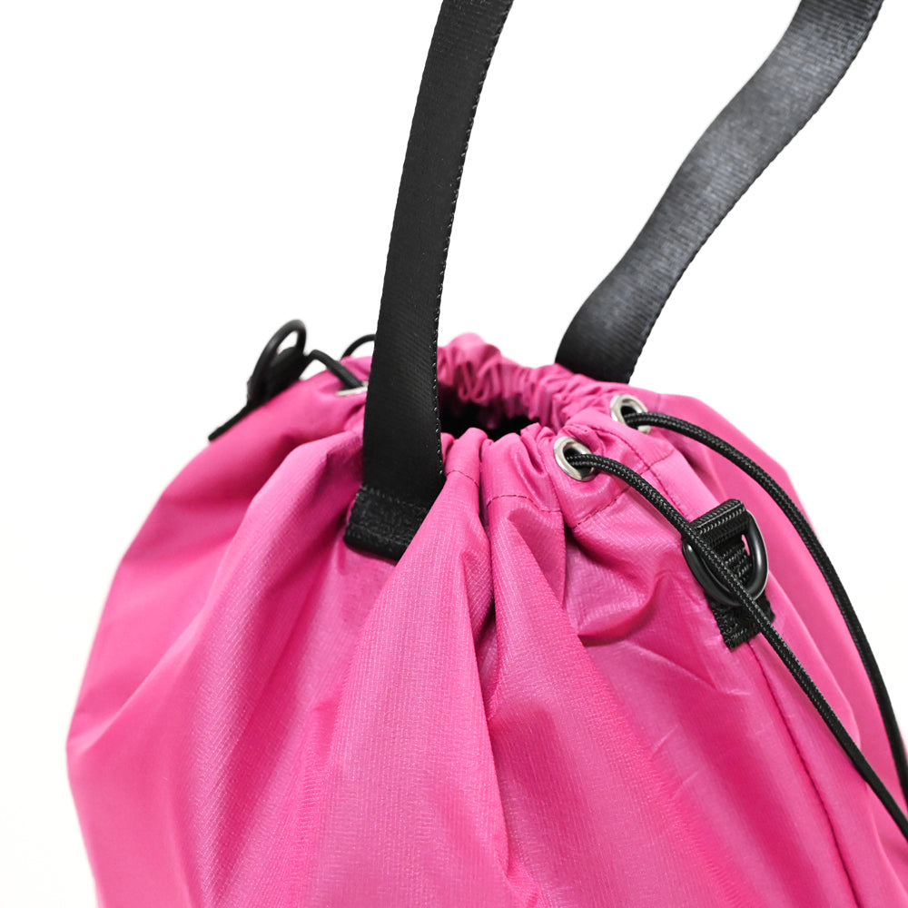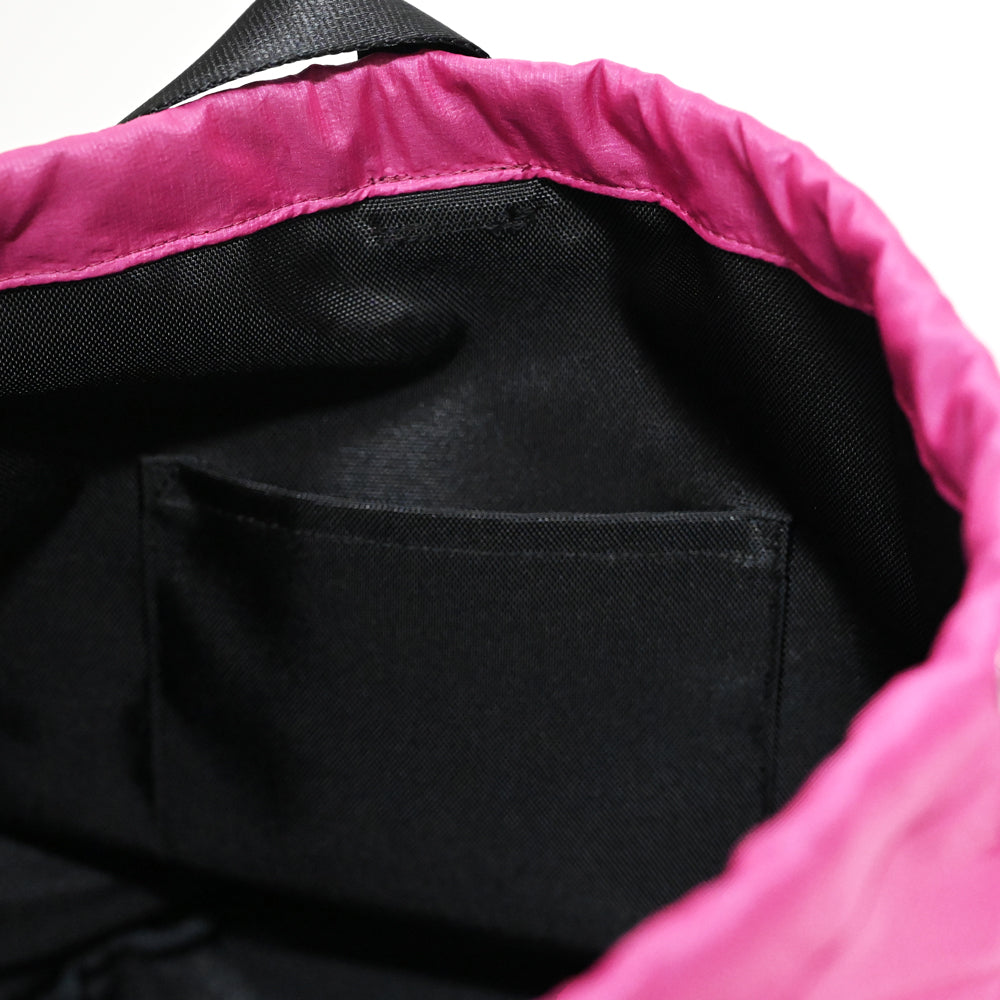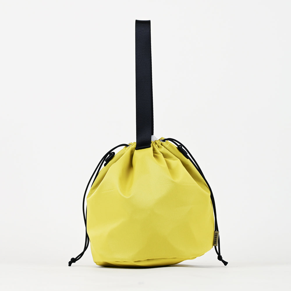 巾着の絞り方で容量調整可能(2.1~6.5L)。内ポケット付きでスマホや小物をサッと取り出せてバッグの中も整います。
