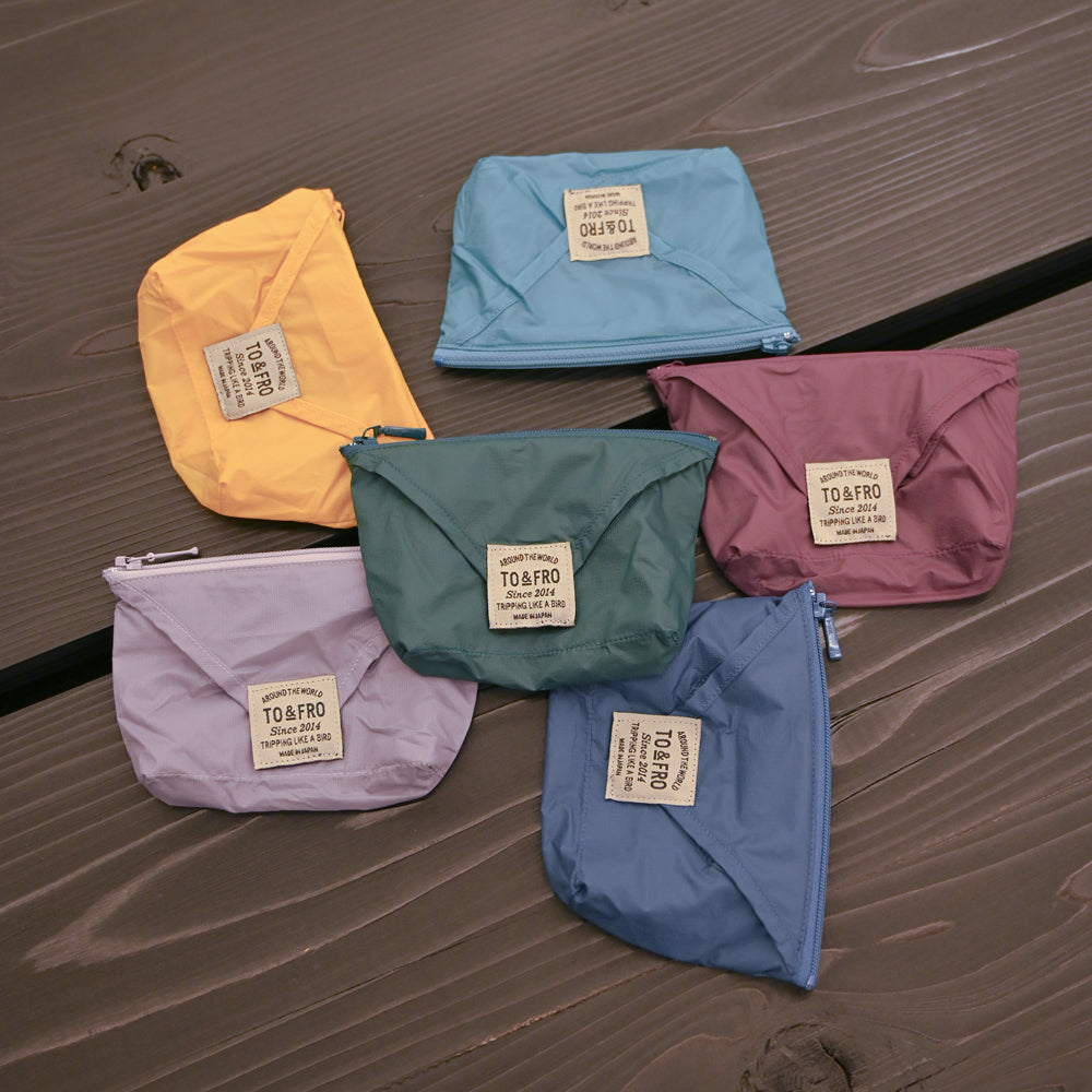 少しでも荷物を軽くして出かけたいという思いに応えた、驚くほど薄くて軽い、当社オリジナル生地を使った、コンパクトマルチポーチ。