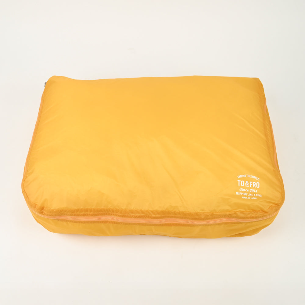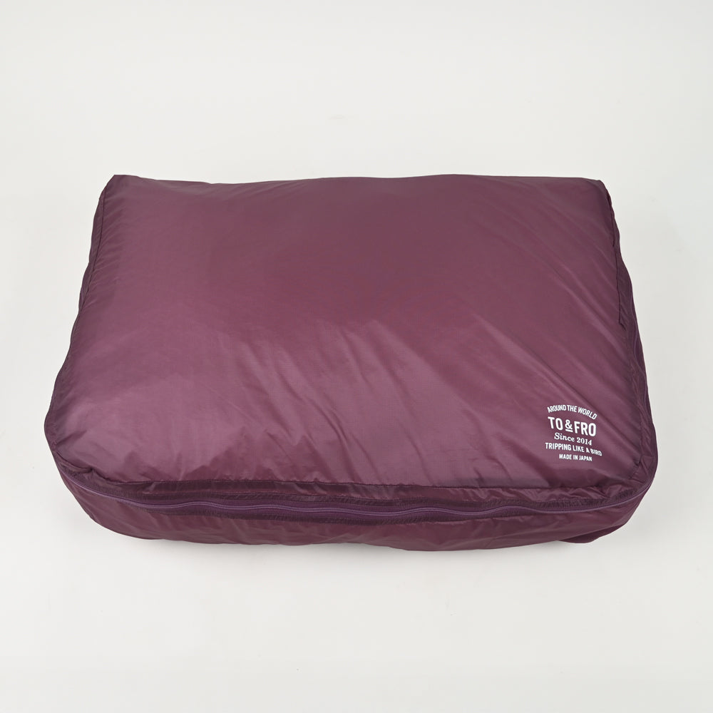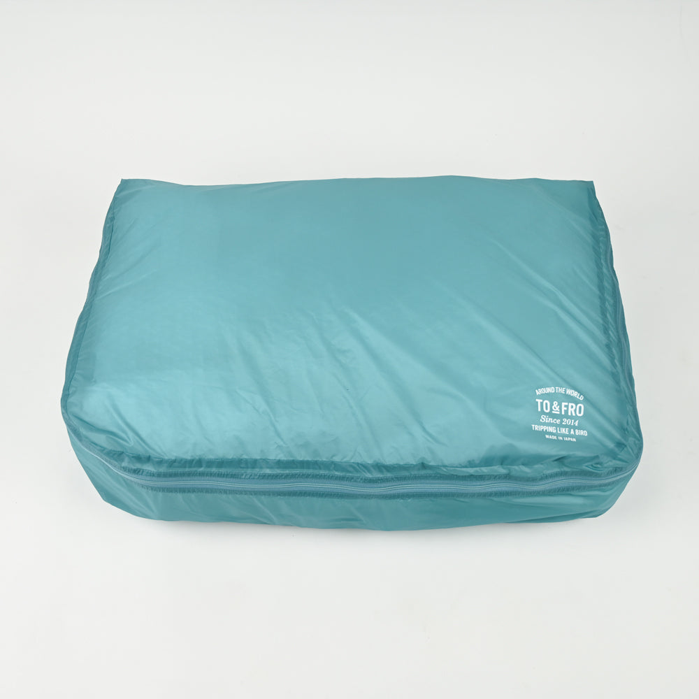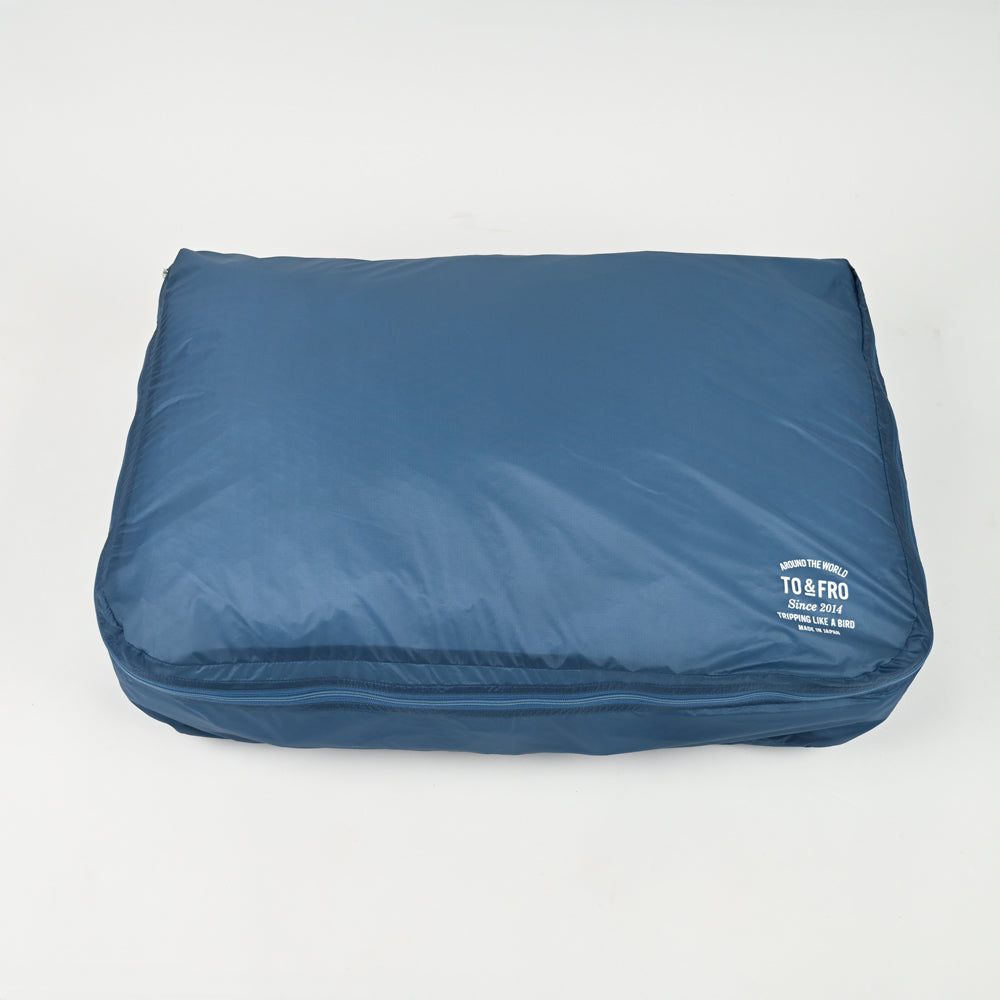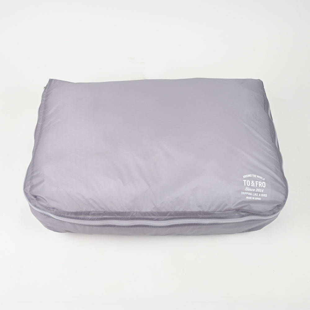 このオーガナイザーAIR Lは、従来定番品のトラベルオーガナイザー Lと同じサイズ(幅52cm×奥行37cm×高さ10cm)のまま、さらに薄い生地を使用することでより軽量性をアップ。