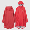 長めの丈の前裾と後ろ裾のボタンを留めることができ、また袖もサムホール(親指を通せる穴)があるため、袖口や足元からの水の侵入を防ぐだけでなく、自転車に乗った時の裾の巻き込み防止にも役立ちます。