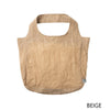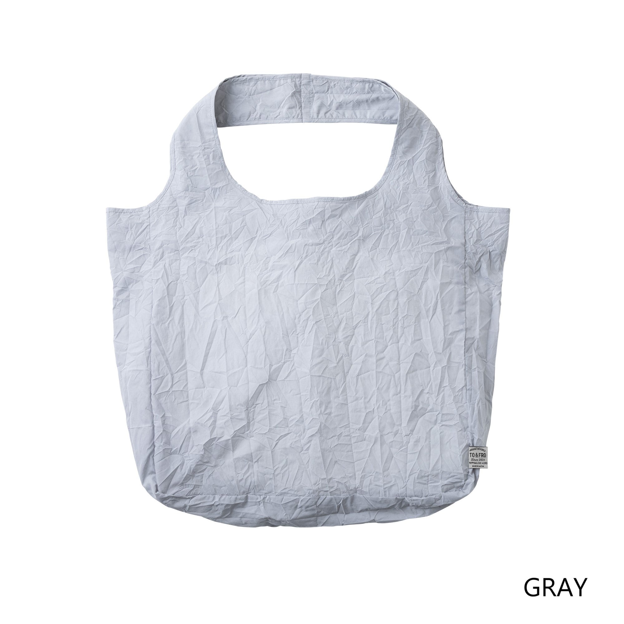 薄くて丈夫な生地に特殊なシワ加工を施したTO&FROのオリジナル素材「Peacock」を使用した、撥水機能付きの携帯バッグ。口についたテープを使ってくるくる丸めれば手のひらサイズに収納できるのに、広げると15L容量のトートバッグ。持ち手は2枚仕立てで強度をアップ。7kgの重い荷物にも耐えられます。口も大きく肩に掛けたまま荷物の出し入れができるなど、細部の使いやすさにもこだわりました。上質で高級感のある風合いが特徴です。