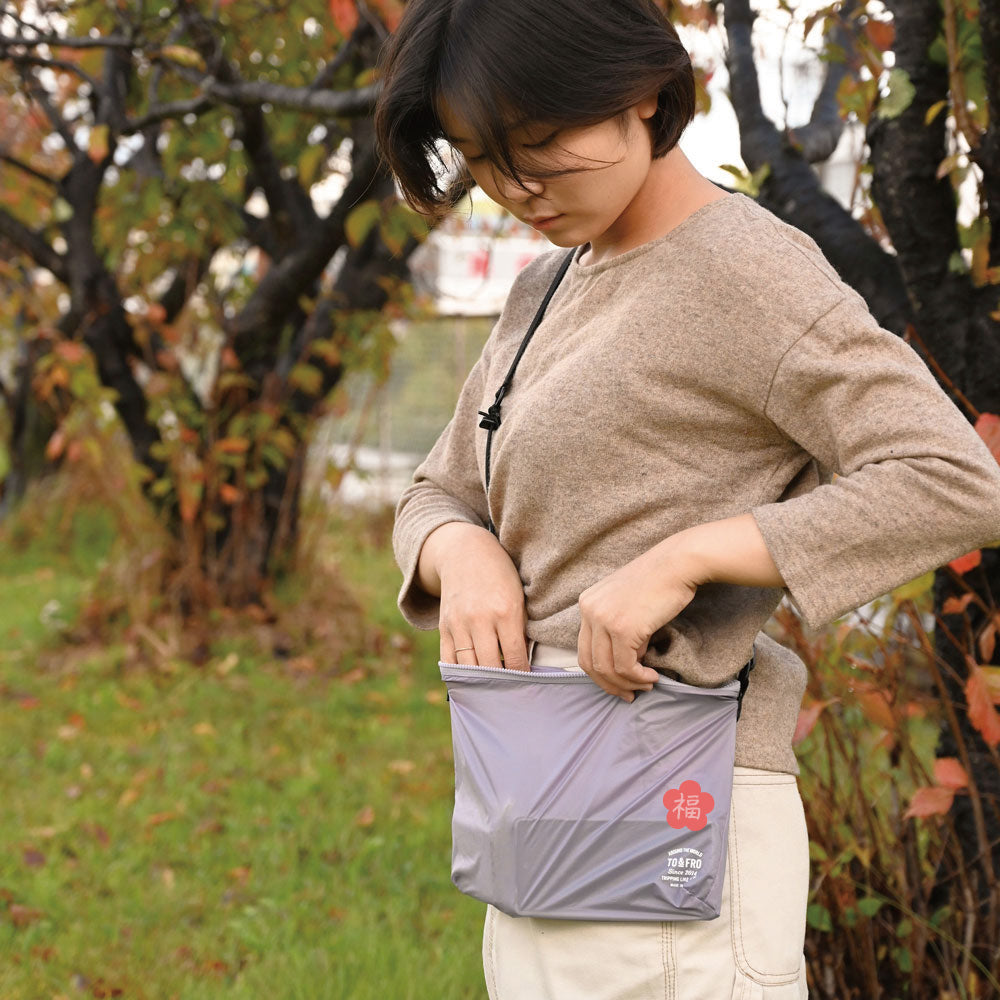アルティメットライトショルダーバッグミニは、手のひらサイズのジップ袋に入っています。中にショルダーバッグが入っているとは思えないサイズ感に小さくコンパクトに収納されており、ギフトとしてもそのままお渡し頂けます。